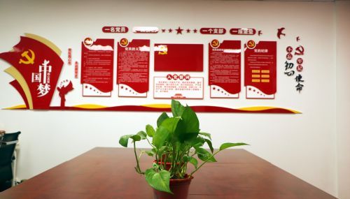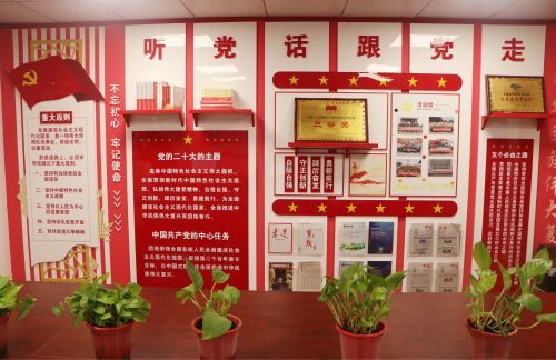 基于三個功能劃分,黨建活動室進行了整體的規劃,除了活動室所必須的桌椅外,主要建設內容包含了:建設一面宣誓墻。宣誓墻上展示內容可包括入黨誓詞、黨員權利、黨員義務及黨員制度等;同時,宣誓墻可為預備黨員宣誓、黨的重要節日和黨的理論學習時提供黨員再教育的功能;建設一面黨的二十大精神的宣傳墻,宣傳墻上主要內容有黨的二十大的主題、中國共產黨的中心任務,以及五個必由之路等內容,切實宣傳貫徹黨的二十大精神;建設一面活動宣傳欄?;顒有麄鳈诘墓δ苤饕糜谌粘|h務以及各黨支部特色活動的宣傳、展示,也可以作為問題討論書寫的空間;建設一面展示柜,其中包括了榮譽展示、書籍陳列和資料收集保存三個功能化區域,可充分展示華東分公司黨建所獲榮譽、陳列黨建書籍和專業書籍等;建設一個黨務公開欄,黨務公開欄主要放置日常黨務、學習心得、談心談話以及集團公司報紙報刊,并實時更新,供黨員參考學習;